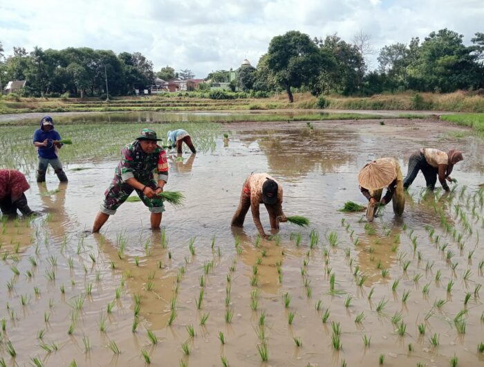 Dengan penuh semangat Babinsa juga menumbuhkan semangat dan motivasi terhadap para petani dalam menanam padi, bukan hanya saat panen padi saja tetapi juga di saat penyemaian bibit padi, pengolahan lahan sawah, perawatan sampai panen padi. Seperti saat ini yang sedang mereka lakukan ialah menanam padi di sawah, sebagai wujud rasa kepedulian terhadap para petani.